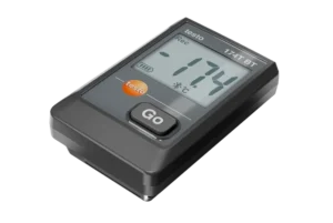Testo 174 T BT to kompaktowy mini rejestrator temperatury przeznaczony do ciągłego monitorowania warunków w pomieszczeniach, magazynach, chłodniach oraz systemach HVAC/R. Urządzenie mierzy temperaturę w zakresie -30°C do +70°C i umożliwia bezprzewodowy odczyt danych przez Bluetooth® z odległości do 30 metrów za pomocą bezpłatnej aplikacji Testo Smart App.